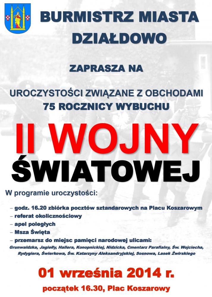 Burmistrz Miasta Działdowo zaprasza na uroczystości związane z Obchodami 75 Rocznicy Wybuchu II Wojny Światowej