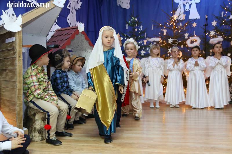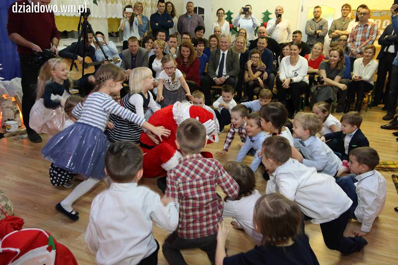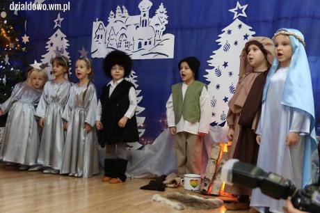 Przedszkolaki przygotowane pod okiem swoich nauczycielek Aleksandry Brzozowskiej i Moniki Szymańskiej wprowadziły wszystkich zebranych w świąteczny, bożonarodzeniowy nastrój. Mali artyści z dużym zaangażowaniem odegrali swoje role - prezentując umiejętności recytatorskie i wokalne. Po Jasełkach była wspólna kolacja wigilijna, a później niespodziankę zrobił Mikołaj, który odwiedził przedszkolaków. Dla każdego miał upominki.