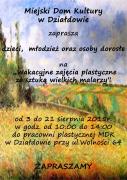 W poniedziałek 3 sierpnia 2015r. rozpoczyna się cykl zajęć plastycznych w pracowni plastycznej Miejskiego Domu Kultury w Działdowie. Zajęcia pod hasłem "Wakacyjne zajęcia plastyczne ze sztuką wielkich malarzy" będą trwały do 21 sierpnia.