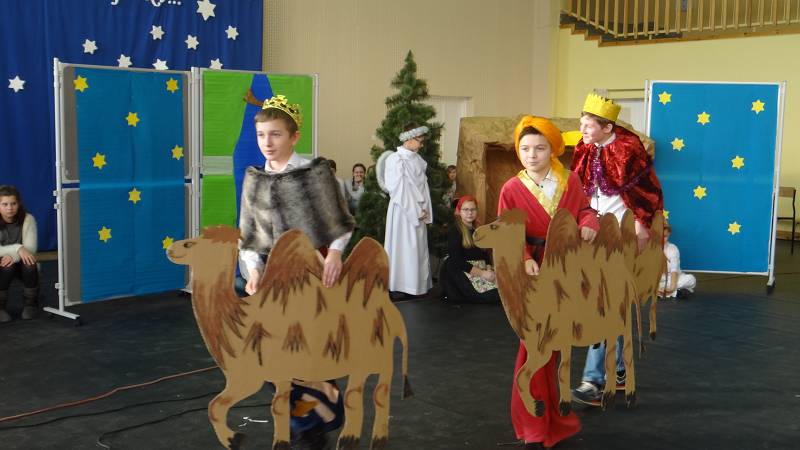 Wspaniała oprawa muzyczno-plastyczna dopełniła dzieła, a wspólne kolędowanie zapewniło odpowiednią atmosferę. W świątecznym nastroju uczniowie wraz z wychowawcami udali się na klasowe wigilie.