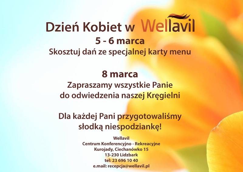 Centrum Konferencyjno-Rekreacyjne Wellavil przygotowało specjalną ofertę z okazji Dnia Kobiet. 8 marca na wszystkie Panie będą w nim czekały słodkie niespodzianki.