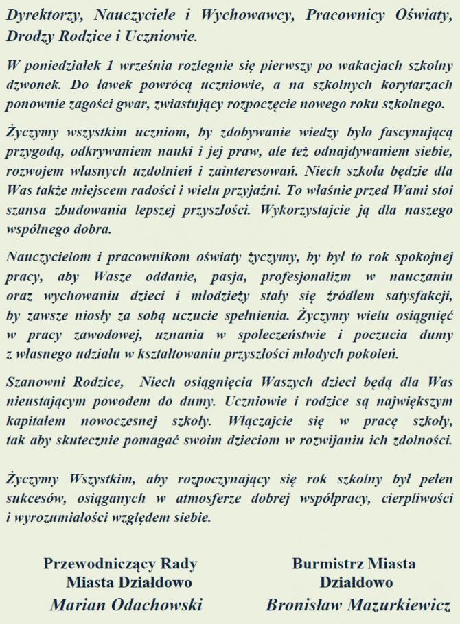 Życzenia z okazji rozpoczęcia roku szkolnego