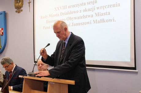 W dniu 24 czerwca odbyła się uroczysta sesja Rady Miasta Działdowa, podczas której profesor Janusz Małłek odebrał z rąk Burmistrza Grzegorza Mrowińskiego oraz Przewodniczącego Rady Romualda Remiszewskiego Honorowe Obywatelstwo Miasta Działdowa. Jest to czwarty tytuł Honorowego Obywatela przyznany w naszym mieście po roku 1990.