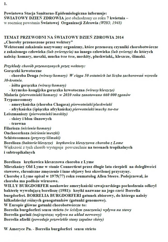ŚWIATOWY DZIEŃ ZDROWIA jest obchodzony co roku 7 kwietnia - w rocznicę powstania Światowej Organizacji Zdrowia (WHO, 1948)