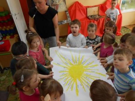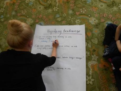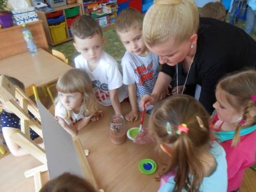 Metoda projektów to metoda nauczania, w której dzieci prowadzą pogłębione badania na określony temat. Dzieci badają jeden temat przez dłuższy czas. Przy wyborze tematu istotną rolę odgrywa ich zainteresowanie. Temat musi być dla dzieci ważny i powinien odnosić się do ich doświadczeń życiowych. Dzieci często prowadzą szczegółowe badania na poziomie o wiele bardziej zaawansowanym, niż wyobraża sobie większość dorosłych. Rola nauczyciela polega na włączeniu do projektu treści merytorycznych, np.: w zakresie matematyki, czytania, wiedzy o środowisku. Wiele działań planują same dzieci - z pomocą nauczyciela. Plany dotyczą miejsca zajęć terenowych oraz rozmów z ekspertami. Dzieci korzystają z różnych materiałów źródłowych - w tym tradycyjnym, np. książek - by znaleźć odpowiedzi na swoje pytania, oraz prowadzą pogłębione działania badawcze podczas zajęć terenowych. Przygotowują pytania do rozmówców i ustalają konkretne zadania do realizacji. Dzieci rozwiązują problemy samodzielnie - nauczyciel zakreśla tylko pewne ramy oraz pomaga w poszukiwaniu rozwiązań i potrzebnych materiałów. W miarę wzrostu wiedzy dzieci nauczyciel wspólnie z nimi tworzy siatkę pojęciową, dzięki której wszyscy widzą ile zdobyły wiadomości. Uzyskane wiadomości przedstawiają w formie plakatów, prac plastycznych, schematów graficznych, tabel, dzienniczków, konstrukcji, zdjęć. Projekt w dużym stopniu uwzględnia te same wiadomości i umiejętności, które wprowadza się w sposób bardziej sformalizowany. Ponadto projekt stwarza dzieciom możliwość zastosowania nowo nabytej wiedzy w praktyce, w trakcie rozwiązywania problemów i dzielenia się informacjami. Daje też okazję do rozwijania umiejętności pracy zespołowej i pobudza myślenie, co usprawnia procesy intelektualne. W trakcie badania tematu "farb" dzieci: - poznawały rodzaje farb, ich przeznaczenie, kolory; - zdobywały informacje jak i gdzie powstają farby w zależności od przeznaczenia; - przeprowadzały doświadczenia związane z farbami (klasyfikowanie, porównywanie, mieszanie, rozpuszczanie etc.); - malowały farbami na różnym podłożu - papierze, szkle, płótnie wg własnego pomysłu; - zadawały pytania zaproszonym gościom - ekspertom; - śpiewały piosenki związane z tematem; - słuchały opowiadań i wierszy; - tworzyły własne opowiadania i bajki; - konstruowały pojęcia; - przeliczały (liczebniki główne i porządkowe); - grały na instrumentach; - tworzyły piktogramy; - brały udział w wyprawach w teren. Zabawy wykorzystujące metodą projektów wpływają na: - osiągnięcia dzieci w zakresie przygotowania do nauki czytania i pisania; - rozwój społeczno-emocjonalny dzieci; - umiejętność rozwiązywania problemów; - uczenie się od rówieśników (modelowanie); - umiejętność współpracy w zespołach; - rozwijanie empatii; - umiejętność zadawania pytań i stawiania hipotez; - rozwijanie zainteresowań dzieci; - rozwój współpracy z rodzicami. Bardzo dziękuję RODZICOM dzieci z gr.III, Pani Dyrektor, wszystkim nauczycielkom oraz pozostałym pracownikom, szczególnie Małgosi Wójcik i Sylwii Burchel za wyjątkowy wkład w realizację projektu, dzięki czemu przybrał on niesamowity wymiar!!! Okazał się on wspólną przygodą moją i DZIECI!!!! Justyna Frejnik