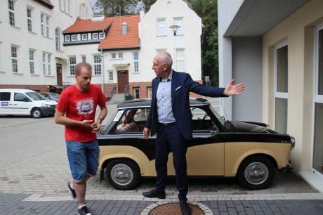 W sobotę na ulicach Działdowa można było również spotkać ciekawy pojazd. Trabantem TVP 3 Olsztyn przemieszczał się burmistrz Grzegorz Mrowiński i prowadzący program "Klasykiem przez Cittaslow" Bartosz Gołębiowski. Ekipa realizatorów odwiedziła wiele ciekawych miejsc w Działdowie, w których nagrywała materiały, a efekty jej wizyty będzie można zobaczyć już 18 sierpnia o godz. 18.10 w TVP 3 Olsztyn. Serdecznie zapraszamy!