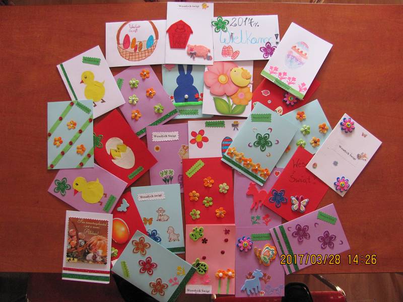Z zebranej żywności i dokupionych słodyczy przygotowaliśmy 70 paczek żywnościowych. Każda paczka zawierała kartkę z życzeniami Wielkanocnymi przygotowanymi przez dzieci i młodzież z klubu "Uśmiechnięta przystań" przy Oddziale Rejonowym PCK. Paczkami siostry PCK obdarują osoby starsze będące pod opieką naszego punktu opieki.