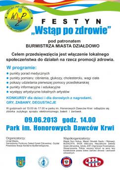 Zapraszamy na Festyn "Wstąp po zdrowie", który odbędzie się 09 czerwca 2013 r. od godz. 14.00 w Parku im. Honorowych Dawców Krwi