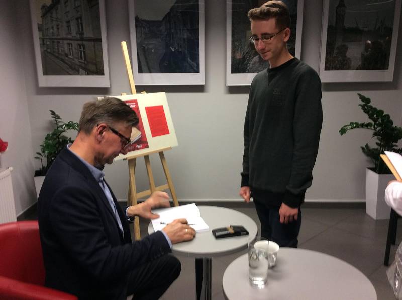 Powodem spotkania była promocja najnowszej książki tego autora, zatytułowanej "Pocałuj światło. 89 wierszy", które opracował dr hab. Adrian Gleń.