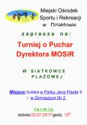 Miejski Ośrodek Sportu i Rekreacji w Działdowie zaprasza na Turniej o Puchar Dyrektora MOSiR w siatkówce plażowej, który rozpocznie się w sobotę 22 lipca 2017 r. o godz. 10.00 na boiskach w Parku im. Jana Pawła II i w Gimnazjum nr 2.