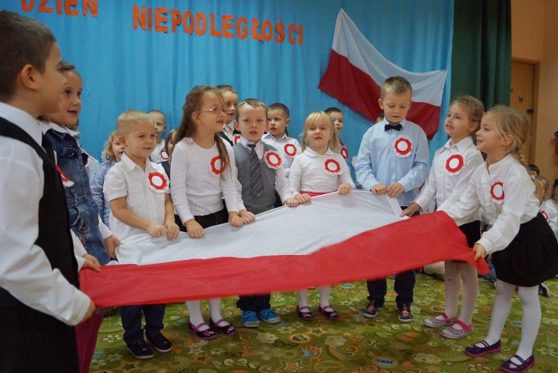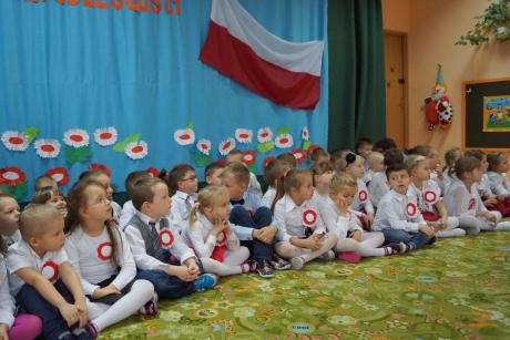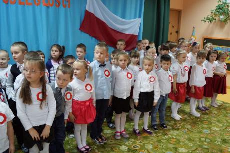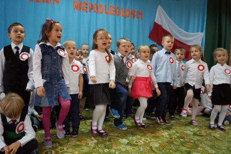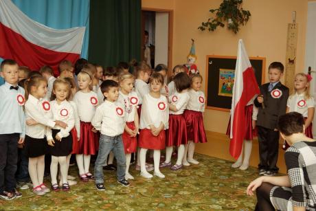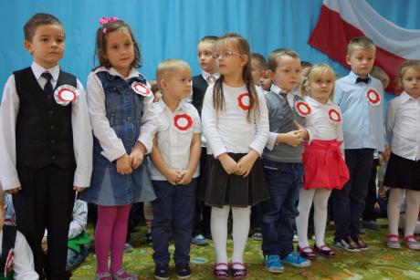 W uroczystości brały udział dzieci 4, 5 i 6-letnie, które pięknie recytowały wiersze o tematyce patriotycznej, nie zabrakło także hymnu Polskiego, Roty, pieśni Szarej Piechoty oraz bardzo wzruszającej pieśni "Marsz I Brygady".