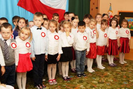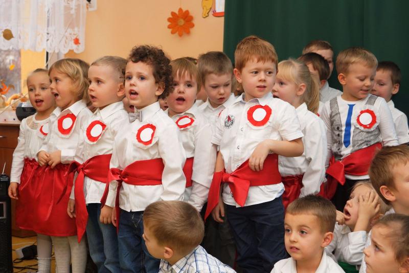 Poprzez kultywowanie uroczystości narodowych uczymy się patriotyzmu, kształtujemy pozytywne postawy i uczucia patriotyczne. Dzieci posiadają naprawdę szeroką wiedzę na temat swojego miasta i kraju, a miłość do Ojczyzny przekazują właśnie poprzez wiersze i piosenki.