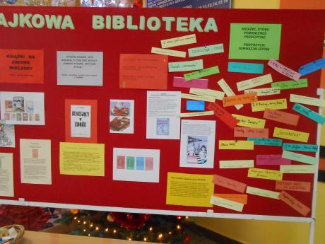Podsumowaniem akcji, której celem było zachęcenie nastolatków do czytania książek, było zorganizowanie happeningu czytelniczego, podczas którego każdy mógł przywiesić na gablocie bibliotecznej tytuł książki, którą poleca przeczytać innym.