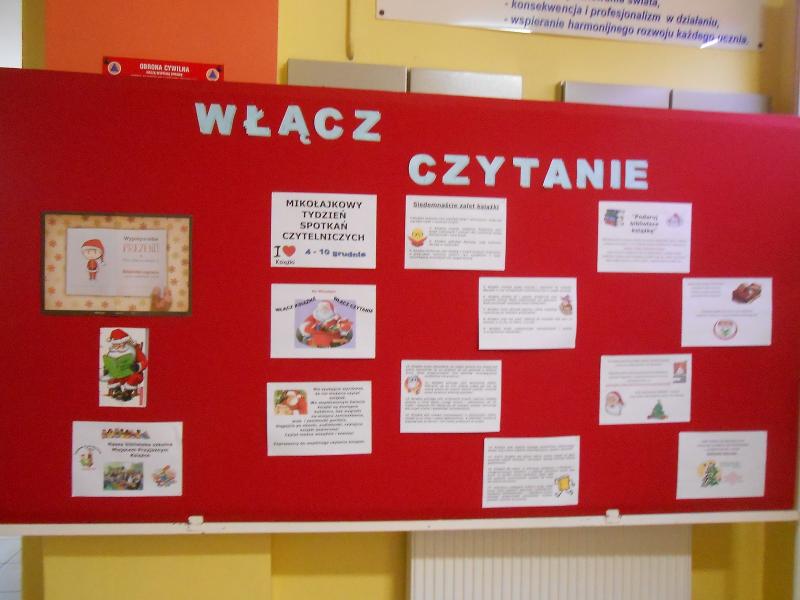 Biblioteka Gimnazjum nr 2 im. Królowej Jadwigi w Działdowie przystąpiła do akcji "Włącz książkę Włącz czytanie", która odbywa się w ramach Mikołajkowego Tygodnia Spotkań Czytelniczych. Akcja została ogłoszona przez www.mimamo.pl - innowacyjną platformę kulturalno - edukacyjną. Instytucje, które wezmą udział w akcji, mają szansę otrzymać tytuł "Miejsce przyjazne książce".