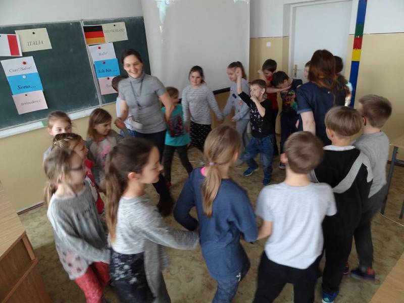 Hiszpański, niemiecki i włoski - to w tych językach dzieci 23 marca w atmosferze zabawy, przygody, współpracy w grupie oraz w ramach indywidualnych wyzwań podjęły próbę powitania, przedstawienia się oraz pożegnania. Prosta zabawa w układaniu puzzli z konturami państw zamieniła się w podróż po Europie. Pojawili się również bohaterowie bajek z piosenkami w trzech nieobcych już językach na ustach. Panie Dorota Chmielewska i Joanna Błażyńska uświadomiły dzieciom, jak ważna jest dzisiejszym świecie znajomość języków obcych. Dzieci natomiast zadeklarowały chęć rozwijania umiejętności językowych.