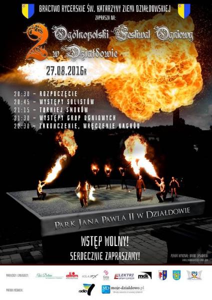 Serdecznie zapraszamy na II Ogólnopolski Festiwal Ogniowy w Działdowie organizowany przez Bractwo Rycerskie Św. Katarzyny Ziemi Działdowskiej.