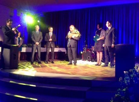 fot. Festiwal Promocji Gospodarczej Warmii i Mazur 2013 w Ełku - Burmistrz Miasta Działdowo Bronisław Mazurkiewicz odbierający wyróżnienie za "Otwarcie Interaktywnego Muzeum Państwa Krzyżackiego w konkursie na najlepsze Wydarzenie Promocyjne w 2013 r."