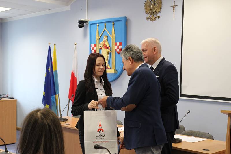Podczas inauguracyjnej sesji II kadencji Rady radni odebrali listy gratulacyjne z rąk Burmistrza Miasta Grzegorz Mrowińskiego, Przewodniczącego Rady Miasta Romualda Remiszewskiego oraz Sekretarza Miasta Tadeusza Marchlewicza.