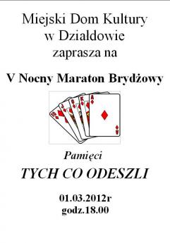 Miejski Dom Kultury w Działdowie zaprasza w dn. 1 marca br., godz. 18:00, na V Nocny Maraton Brydżowy.