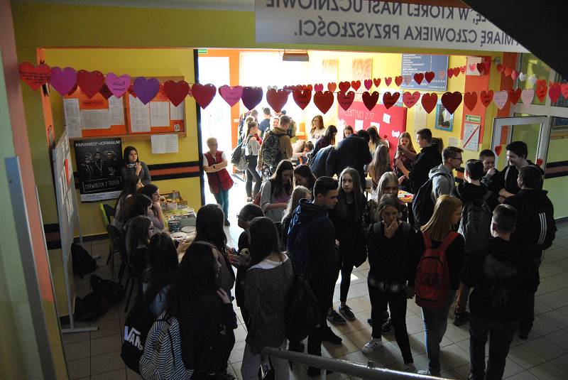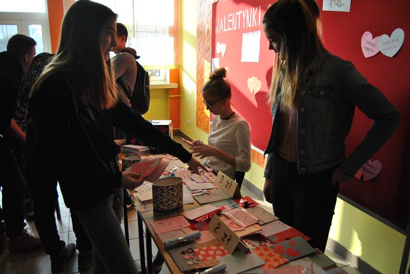 Młodzież przygotowała słodkości na tę okoliczność w postaci ciast, ciasteczek i babeczek. Można było nabyć kartki walentynkowe, własnoręcznie przygotowane przez członków SU, a także skorzystać z gotowych cytatów i wierszyków o miłości i przyjaźni, dostępnych przy oddzielnym stanowisku. Przygotowana została specjalna skrzynka, do której można było wrzucać walentynki. W szkole królował kolor czerwony, a redakcja szkolnego radiowęzła zadbała o odpowiednią oprawę muzyczną, poprowadziła audycję okolicznościową oraz przyjmowała dedykacje i pozdrowienia. Jak zawsze największą atrakcją, wywołującą wiele pozytywnych emocji, była poczta walentynkowa, która zadbała o doręczenie kart z pozdrowieniami ich adresatom.