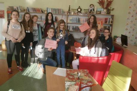 W obchody szkolnych walentynek włączyła się również biblioteka szkolna, która tego dnia promowała hasło: "Zakochana Biblioteka". Z tej okazji zadbano o odpowiedni wystrój, bogaty w walentynkowe gadżety. Wyeksponowano wystawkę książek, których tematem jest miłość wśród nastolatków. Biblioteka zaproponowała czytelnikom "Randkę w ciemno z książką", która polegała na wypożyczeniu zapakowanej jak prezent książki, której tytuł był niewidoczny. Ponadto w bibliotece odbył się krótki konkurs sprawdzający wiedzę uczniów o tradycjach walentynkowych i znajomość poezji miłosnej. Dużym zainteresowaniem cieszyły się zmagania językowe, których celem było podanie wyrażenia "kocham Cię" w różnych językach.