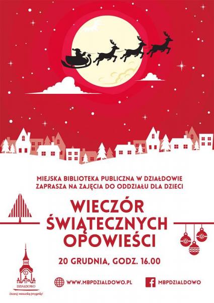 Miejska Biblioteka Publiczna serdecznie zaprasza dzieci i rodziców na Wieczór świątecznych opowieści do Oddziału dla dzieci. Wspólne czytanie odbędzie się 20 grudnia o godz. 16.00.
