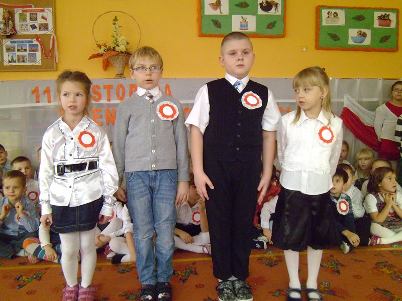 Poprzez tego typu działania uświadamiamy dzieciom uczymy dzieci bycia polakami i miłości do Kraju Ojczystego. Dzieci słowem i piosenką oddają szacunek symbolom Narodowym, symbolom walki o niepodległość i zwycięstwo, wyrażają miłość do Ojczyzny.