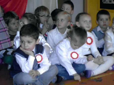 Przedszkolaki zaprezentowały program artystyczny, na który składały się wiersze i pieśni patriotyczne, m.in. Hymn Polski, Rota, Marsz I Brygady, Moja Ojczyzna i inne.