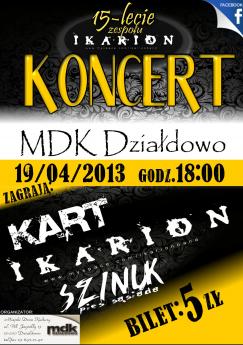 Miejski Dom Kultury w Działdowie zaprasza na koncert Zespołu IKARION z okazji 15-lecia istnienia zespołu.