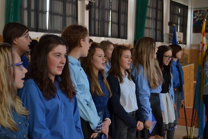 Ślubowanie uświetniły występy chóru, w którym już od pierwszych dni nauki z entuzjazmem występują uczniowie pierwszych klas.