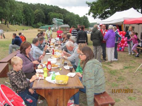 Mimo mało wakacyjnej aury (było zimno i czasami wiał silniejszy wiatr) dopisali główni bohaterowie festynu - krwiodawcy z rodzinami i siatkarze, którzy rozgrywali mecze jeszcze przed oficjalnym rozpoczęciem festynu. Festyn otworzył Prezes Oddziału Rejonowego PCK w Działdowie - Bogdan Ulatowski, wręczył podziękowania, po czym przekazał głos Prezesowi Klubu HDK w Lidzbarku - Romanowi Nawrockiemu, który korzystając z okazji wręczył 3 odznaki Zasłużony Honorowy Dawca Krwi krwiodawcom po oddaniu 6, 12 i 18 l. krwi. Gratulujemy wyróżnionym.