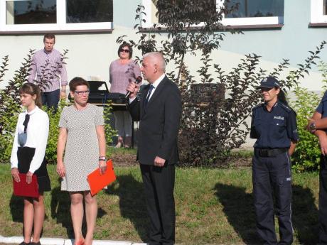 Społeczność szkolną przywitała nasza nowa pani dyrektor - Pani Joanna Karaszewska. Gościem uroczystego rozpoczęcia roku był natomiast Burmistrz Działdowa Grzegorz Mrowiński.