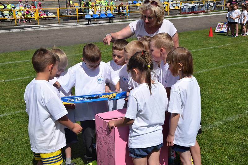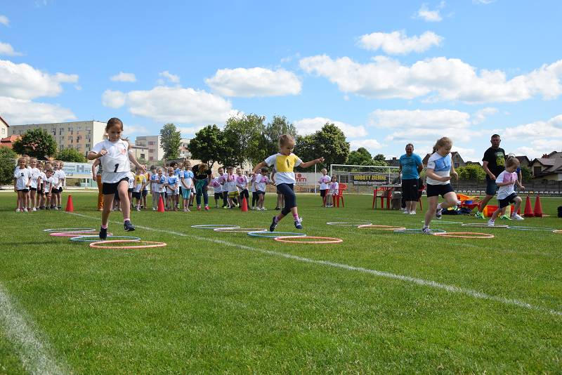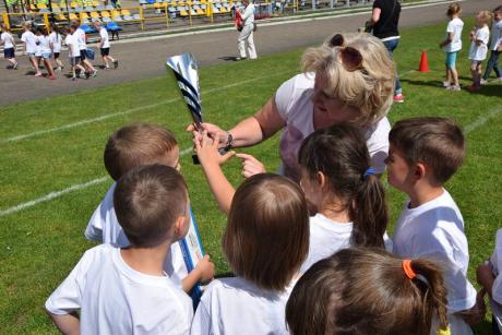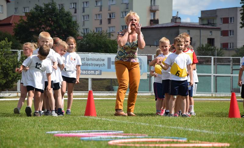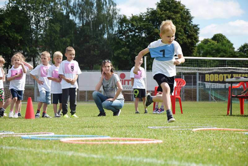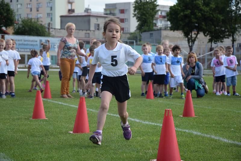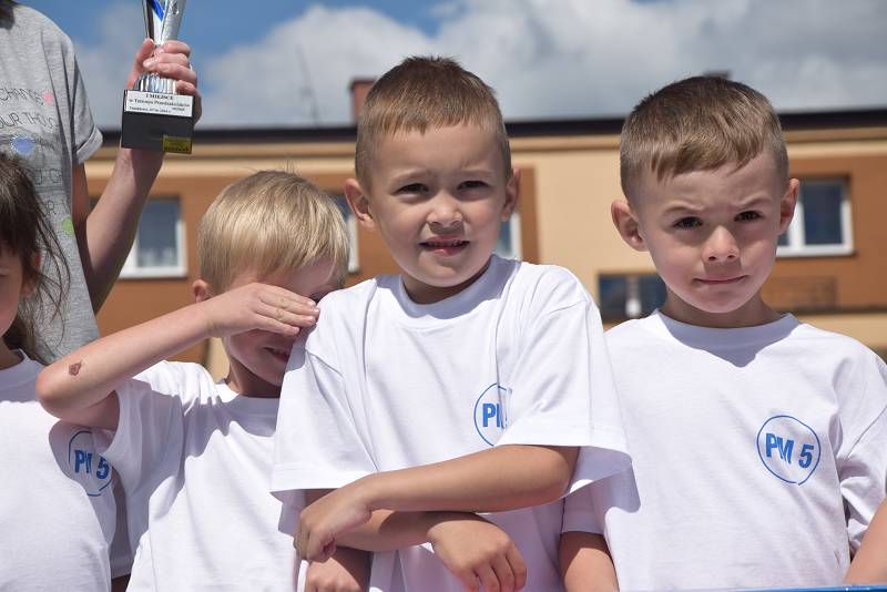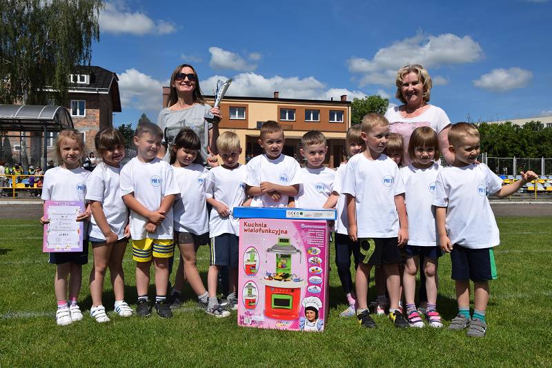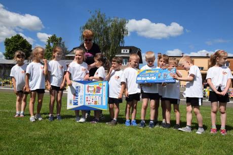 Z myślą o najmłodszych przygotowaliśmy 9 konkurencji: bieg slalomem, bieg z taczką, wyścig kelnerów, rzut woreczkiem do celu, tunel, sprzątanie świata, bieg przez koła, zanieś-przynieś oraz sztafetę biegową. Rywalizacja była zacięta i wyrównana. Przedstawiciele przedszkoli mogli liczyć na gorący doping ze strony swoich kolegów i koleżanek. Wszystkie dzieci otrzymały batoniki, a do przedszkoli trafiły nagrody rzeczowe. Z pucharu, który wręczyła im naczelnik Wydziału Oświaty Urzędu Miasta Ewa Ners, cieszyły się przedszkolaki z "Piątki".