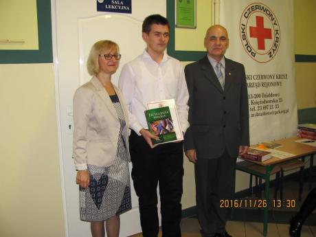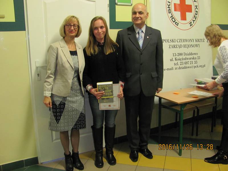 Wręczenia nagród i dyplomów dokonała Pani Marlena Perzyńska - Naczelnik Wydziału Oświaty, Zdrowia i Kultury Fizycznej Starostwa Powiatowego oraz Prezes OR PCK w Działdowie Jerzy Giezek.