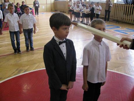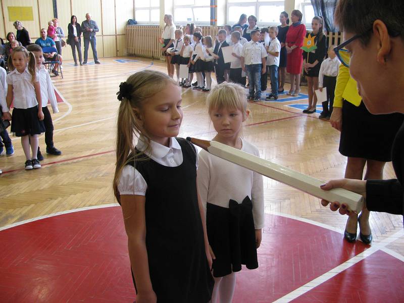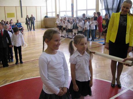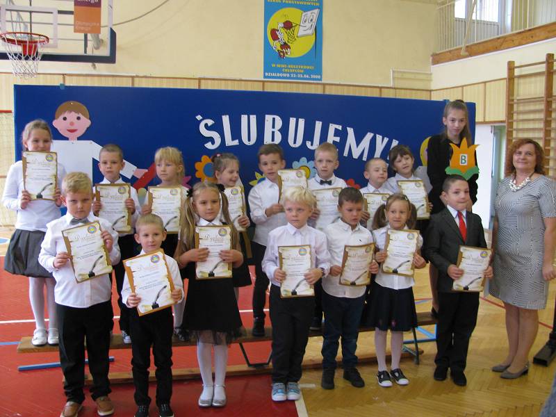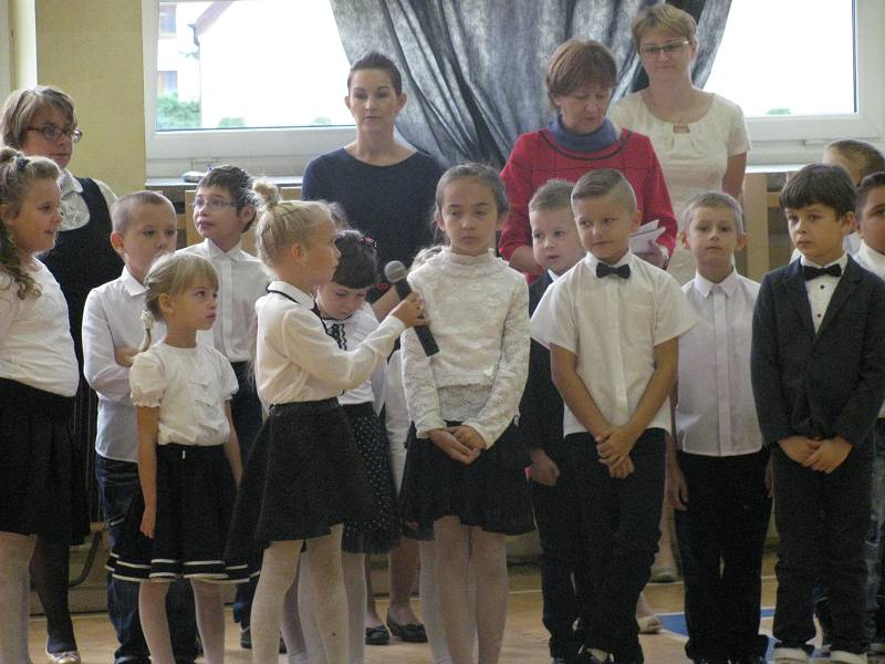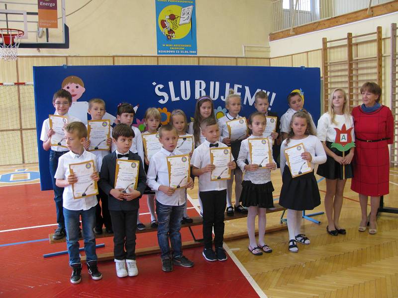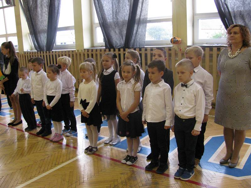 Podczas uroczystości Klasa IA i IB zaprezentowały krótką część artystyczną, piękne wierszyki i piosenki. Dzieci były bardzo przejęte. Licznie przybyli rodzice, obserwowali ze wzruszeniem swoje pociechy. Gościliśmy również na naszej uroczystości panią Ewę Ners - Naczelnika Wydziału Edukacji, Zdrowia, Kultury i Sportu.