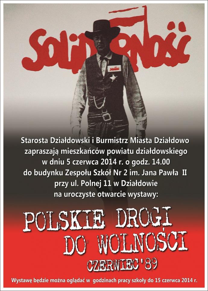 Starosta Działdowski i Burmistrz Miasta Działdowo zapraszają mieszkańców powiatu działdowskiego na uroczyste otwarcie wystawy "Polskie Drogi do Wolności. Czerwiec `89"