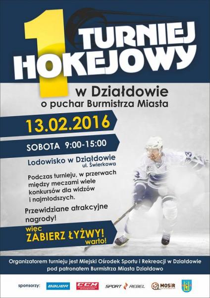 1 Turniej Hokejowy odbędzie się 13 lutego 2016 r. w godzinach od 9.00 do 15.00 na lodowisku przy ul. Świerkowej. Zapraszamy serdecznie wszystkich miłośników jazdy na lodzie i gry w hokeja.
