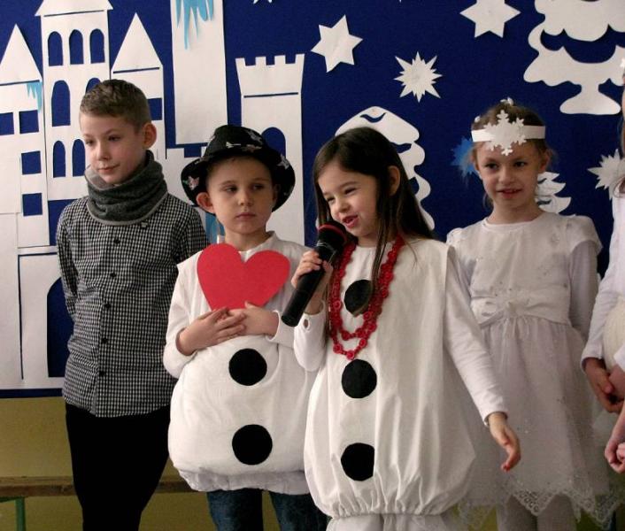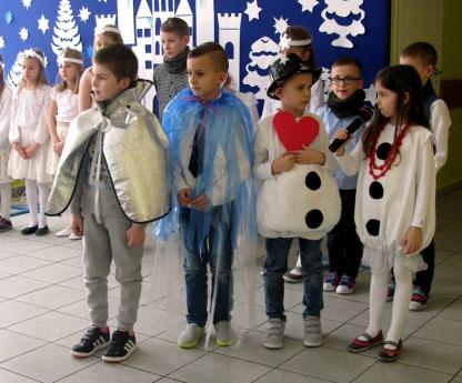 Dzieci pokazały uroki zimy, gry i zabawy, w które można się bawić podczas zimowych ferii, przekazały przestrogi na ferie związane z bezpieczeństwem. Przepiękne dekoracje i stroje aktorów, które powstały dzięki dofinansowaniu z Urzędu Miasta - Zajęcia opiekuńczo-wychowawcze z elementami socjoterapii - pozwoliły poczuć klimat i urok zimy. Materiał: Szkoła Podstawowa nr 3
