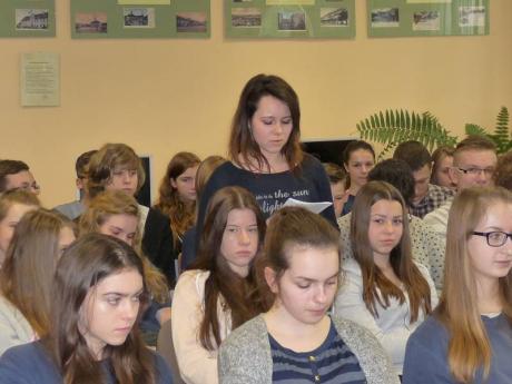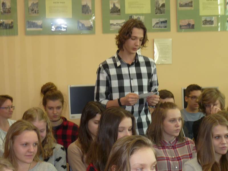 Na początku spotkania uczniowie zaprezentowali wybrane fragmenty z książki, które zaproszona autorka starała się omawiać i bardziej przybliżać szczególnie te wątki, które dla obecnej młodzieży mogą wydawać się bardziej odległe. Uczniowie z zapartym tchem słuchali wypowiedzi pani Elżbiety. Gdy przyszła kolej na pytania, młodzież głownie pytała o to, dlaczego napisała książkę oraz o to, jakie ma plany pisarskie na przyszłość? Autorka na zakończenie obdarowała młodych czytelników biblioteki swoją książką oraz wpisała się do kroniki biblioteki szkolnej. Pani Elżbieta Zakrzewska podziękowała za wspólnie spędzony czas. Zadowoleni młodzi czytelnicy wręczyli autorce kwiaty.
