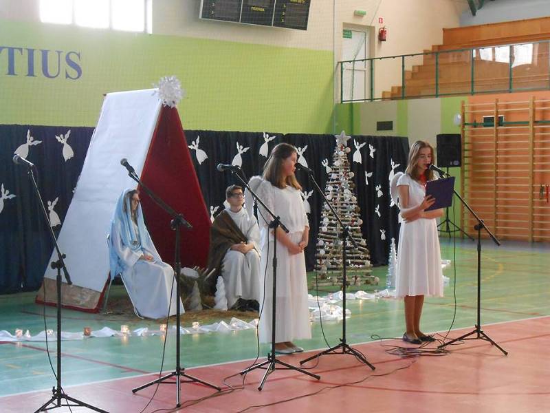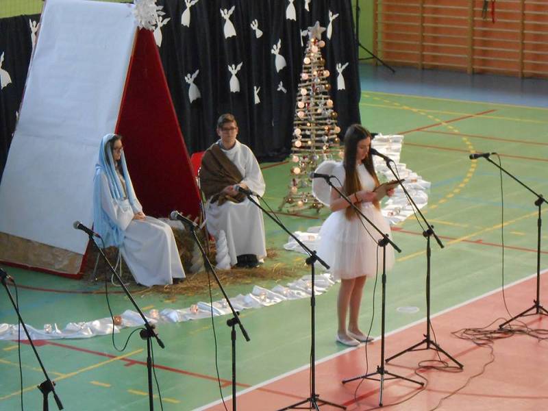 Boże Narodzenie kojarzy nam się także z aniołami i właśnie im uczniowie Gimnazjum nr 2 z Oddziałami Dwujęzycznymi w Działdowie poświęcili przygotowane przez siebie przedstawienia słowno-muzyczne, zaprezentowane społeczności szkolnej tuż przed świętami. W pięknej scenografii uczniowie recytowali wiersze, których bohaterami byli aniołowie. Szkolnej publiczności zaprezentowano utwory poetów polskich: Bolesława Leśmiana, Adama Asnyka, księdza Jana Twardowskiego, Konstantego Ildefonsa Gałczyńskiego, Marii Pawlikowskiej - Jasnorzewskiej. Recytacjom towarzyszyła piękna muzyka Zygmunta Preisnera z filmu "Tajemniczy ogród", a dodatkowym elementem spektaklu były kolędy w wykonaniu solistek szkolnego chóru "Our Voice".