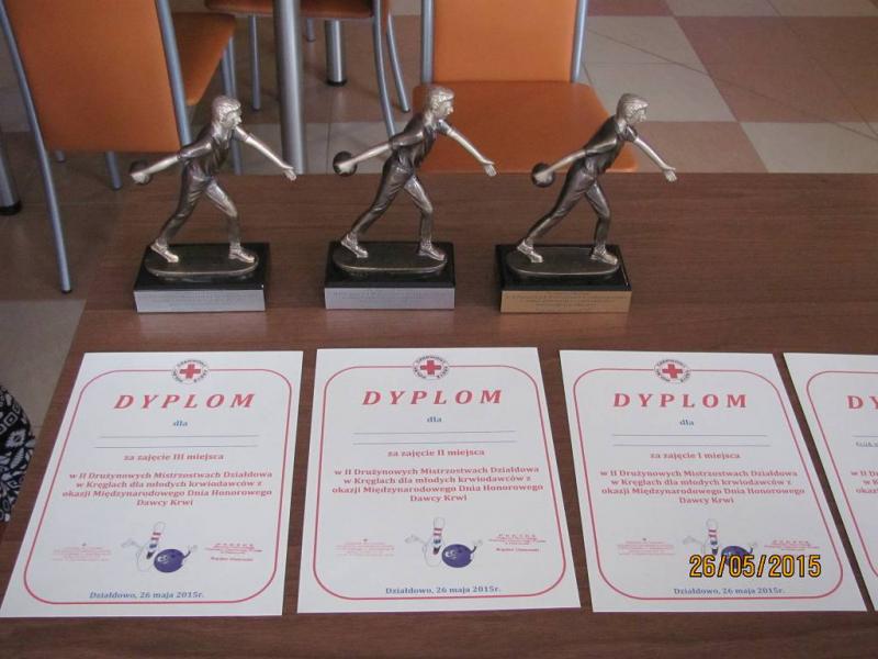 W ubiegłym tygodniu z okazji zbliżającego się Światowego Dnia Honorowego Dawcy Krwi, Oddział Rejonowy Polskiego Czerwonego Krzyża w Działdowie w celach promocyjnych i sportowych zorganizował II Drużynowe Mistrzostwa Działdowa w kręglach dla młodych i wcześniej urodzonych krwiodawców. Mistrzostwa odbyły się w Kręgielni "Bila" w Działdowie. Udział w nich wzięło 6, pięcioosobowych drużyn. Turniej składał się z rundy zasadniczej i finałowej. Liczną grupę uczestników stanowiły panie. Rywalizacja przebiegała w duchu fair play pod czujnym okiem Prezesa OR PCK - ogdana Ulatowskiego. Mistrzostwa stały na wysokim poziomie.