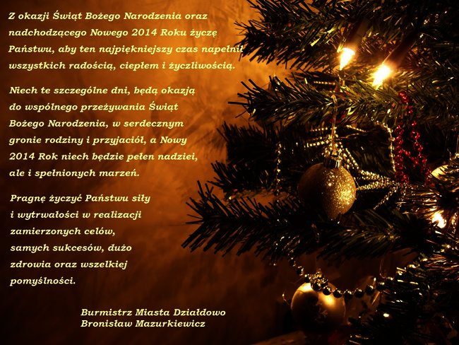 Życzenia Burmistrza Miasta Działdowo z okazji Świąt Bożego Narodzenia i Nowego Roku