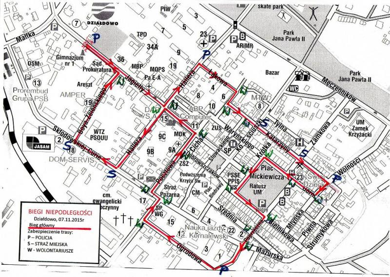 - Bieg główny składa się z dwóch pętli 2,5 km i przebiegać będzie ulicami: Jagiełły, Hallera,