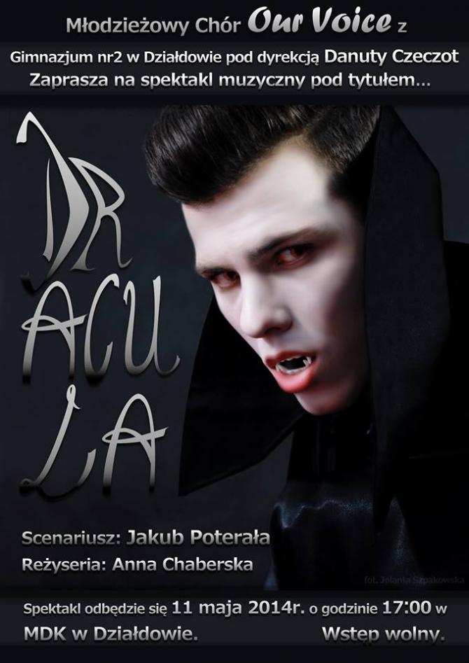 Młodzieżowy Chór Our Voice z Gimnazjum Nr 2 w Działdowie pod dyrekcją Danuty Czeczot zaprasza na spektakl muzyczny pt. "Dracula"