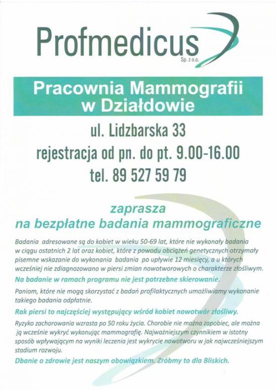Pracownia Mammografii w Działdowie zaprasza na bezpłatne badania mammograficzne