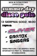 Dni Działdowa przy ul. Świerkowej rozpocznie, 13 sierpnia o godz. 18.00, Summer Day Disco Polo. Wśród występujących zespołów znalazły się: SINGERS, CLIVER oraz ERATOX (zwycięzca 3 edycji programu Disco Star).