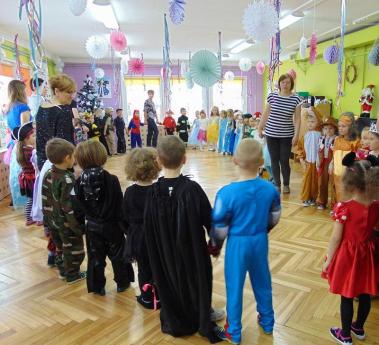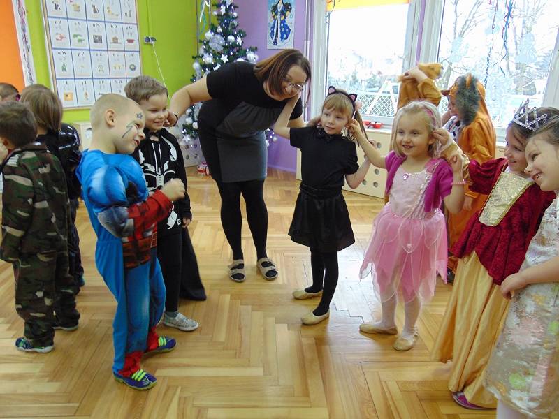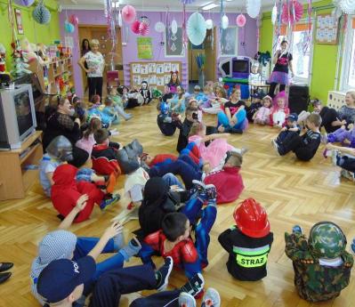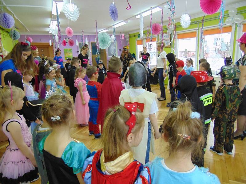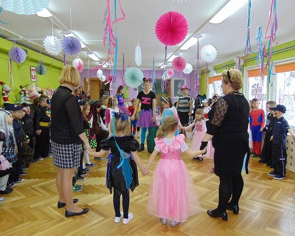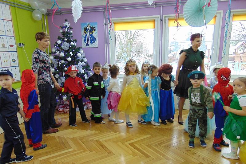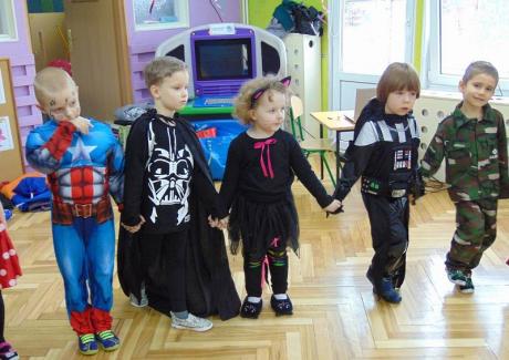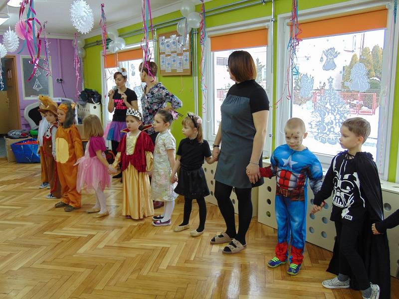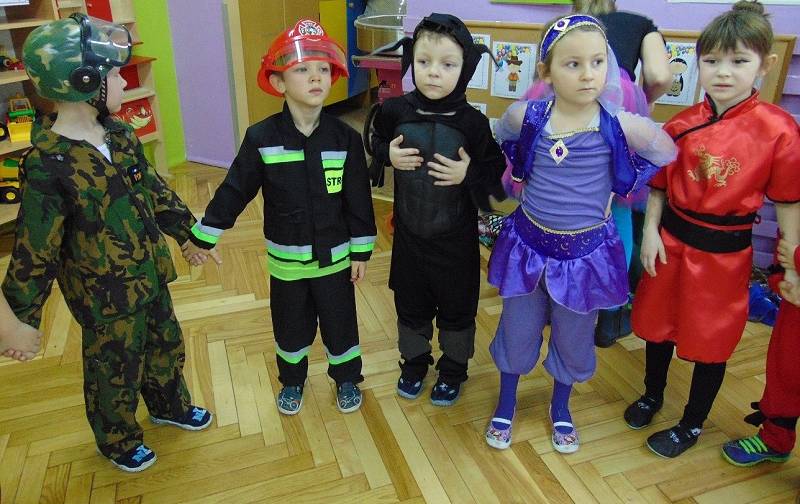 Tego dnia już od rana w przedszkolu pojawiały się kolorowe postacie. Dzieci przebrane były za bohaterów znanych bajek. Można było spotkać wróżki, królewny, dzwoneczki, Elzy, motylki, rycerzy, piratów, policjantów, strażaków, Spider-Mana, Batmana, nie sposób zliczyć i wymienić tych wszystkich postaci.
