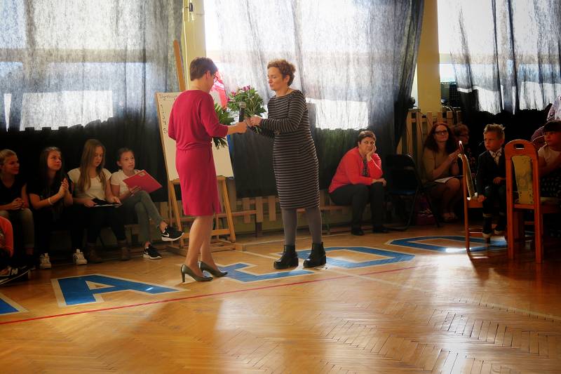 W tym uroczystym dniu słowa podziękowania i życzenia przekazała pracownikom szkoły dyrektor szkoły - pani Joanna Karaszewska. W swoim przemówieniu pani dyrektor zaznaczyła, że wszyscy, którzy szkołę tworzą: nauczyciele i pracownicy administracji i obsługi, rodzice oraz uczniowie mają wpływ na panujący w niej klimat i relacje. Podziękowała wszystkim za zaangażowanie i ogromny wkład pracy na rzecz szkoły oraz poświęcenie i serce, którym obdarzani są uczniowie. "Za to, że jesteście twórczy i kreatywni, pełni pomysłów i ciekawych inicjatyw. To dzięki Waszej pracy nasza szkoła jest wyjątkowa". Życzyła nauczycielom, aby odnaleźli w sobie mistrzostwo, o którym A. Einstein tak pisał: "Wielkim kunsztem wykazuje się nauczyciel, który potrafi sprawić, że twórcze wyrażanie siebie i nabywanie wiedzy staje się źródłem radości".