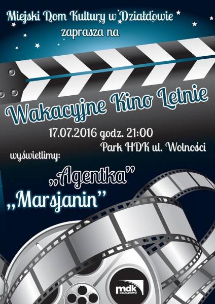 W dniu 17 lipca 2016 roku Miejski Dom Kultury w Działdowie zaprasza do Parku HDK przy ul. Wolności na imprezę WAKACYJNE KINO LETNIE. W tym dniu na dużym telebimie zostaną wyświetlone dwa filmy.