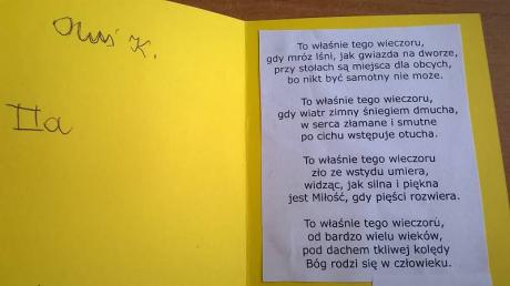 W grudniu uczniowie SP nr 3 podzielili się dobrym słowem w postaci życzeń świątecznych. Wspólnie z Paniami ze świetlicy przygotowały piękne bożonarodzeniowe kartki, którymi obdarowani zostali Seniorzy z Domu Seniora Willa w Iłowie, Domu Opieki w Uzdowie oraz Klubu Seniora działającego przy Spółdzielni Mieszkaniowej Lokatorsko-Własnościowej w Działdowie. Seniorzy nie kryli wzruszenia i radości z otrzymanych kartek. Materiał: Szkołą Podstawowa nr 3
